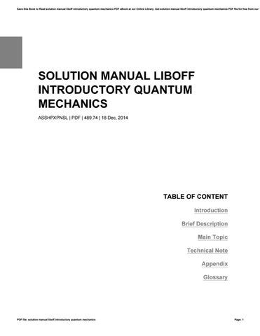 Download PDF Online liboff quantum mechanics solution manual iBooks PDF